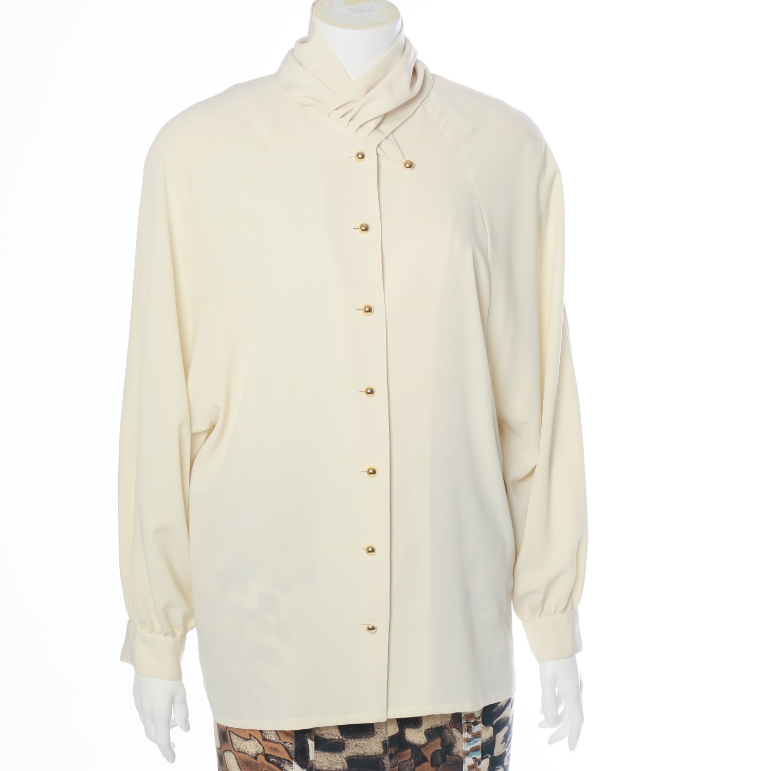 Very chique, fluid, vintage blouse, by the late Dutch couturier Edgar Vos, with ultra deep raglan sleeves and padding.