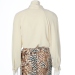 Mandarin collar with fantasy draped scarf attached to right front of panel wich closes with a loop and brass, halfshank button.
