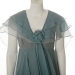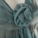 The dress closes in the front with a zipper, hidden by a rose and a long flip tie collar in the same material as the dress.