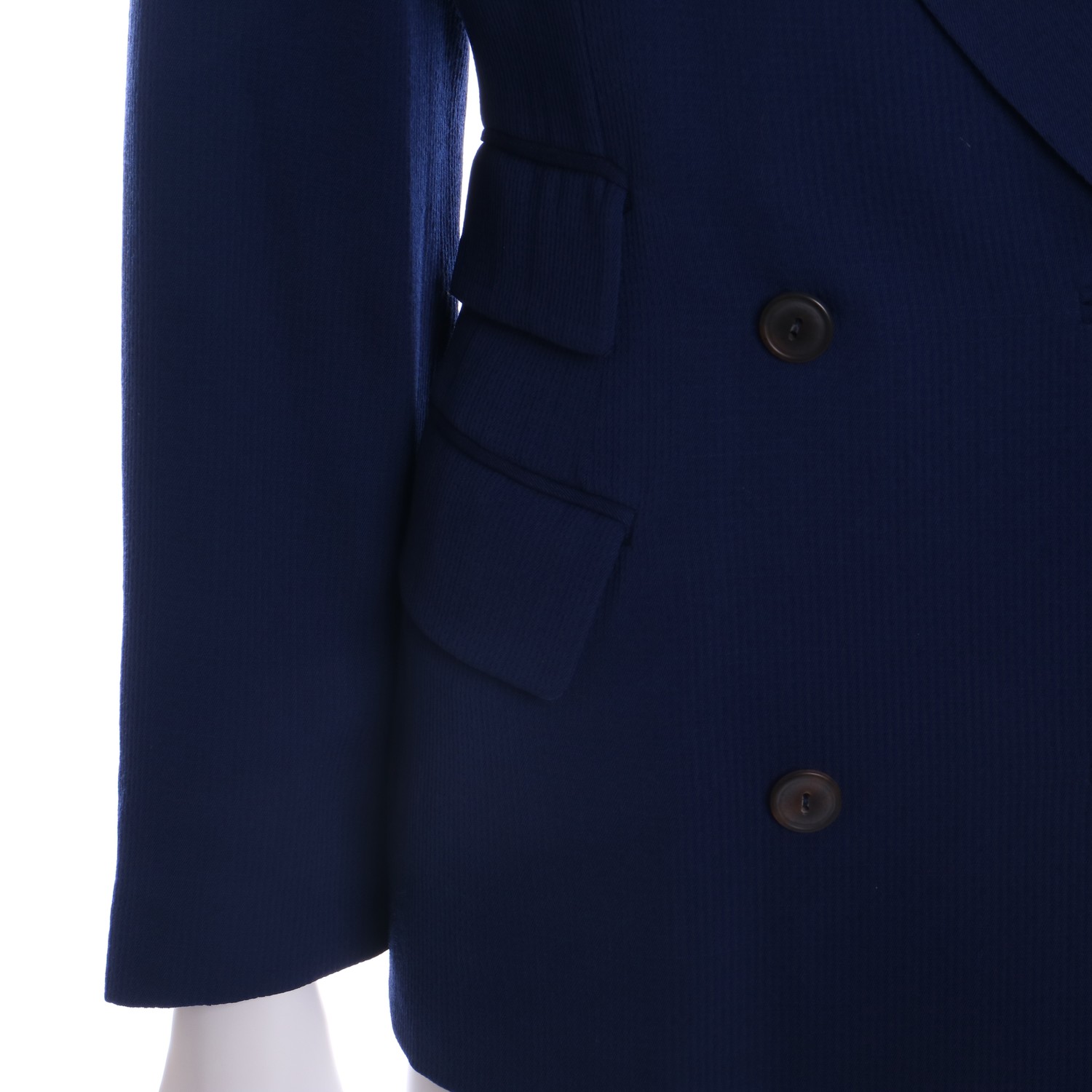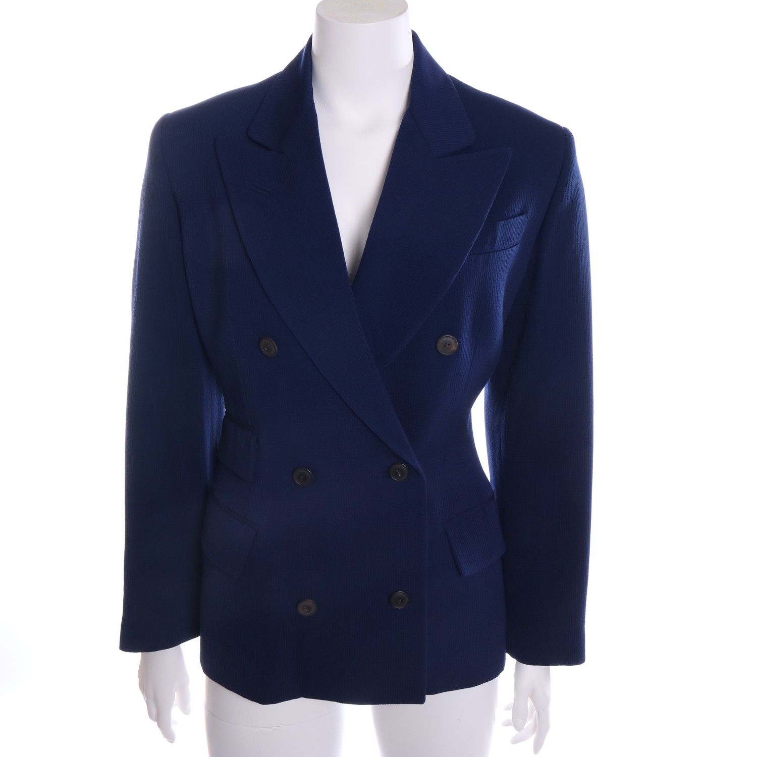 Very fitted, double breasted, six buttons, masculine, vintage jacket with peaked lapels.
