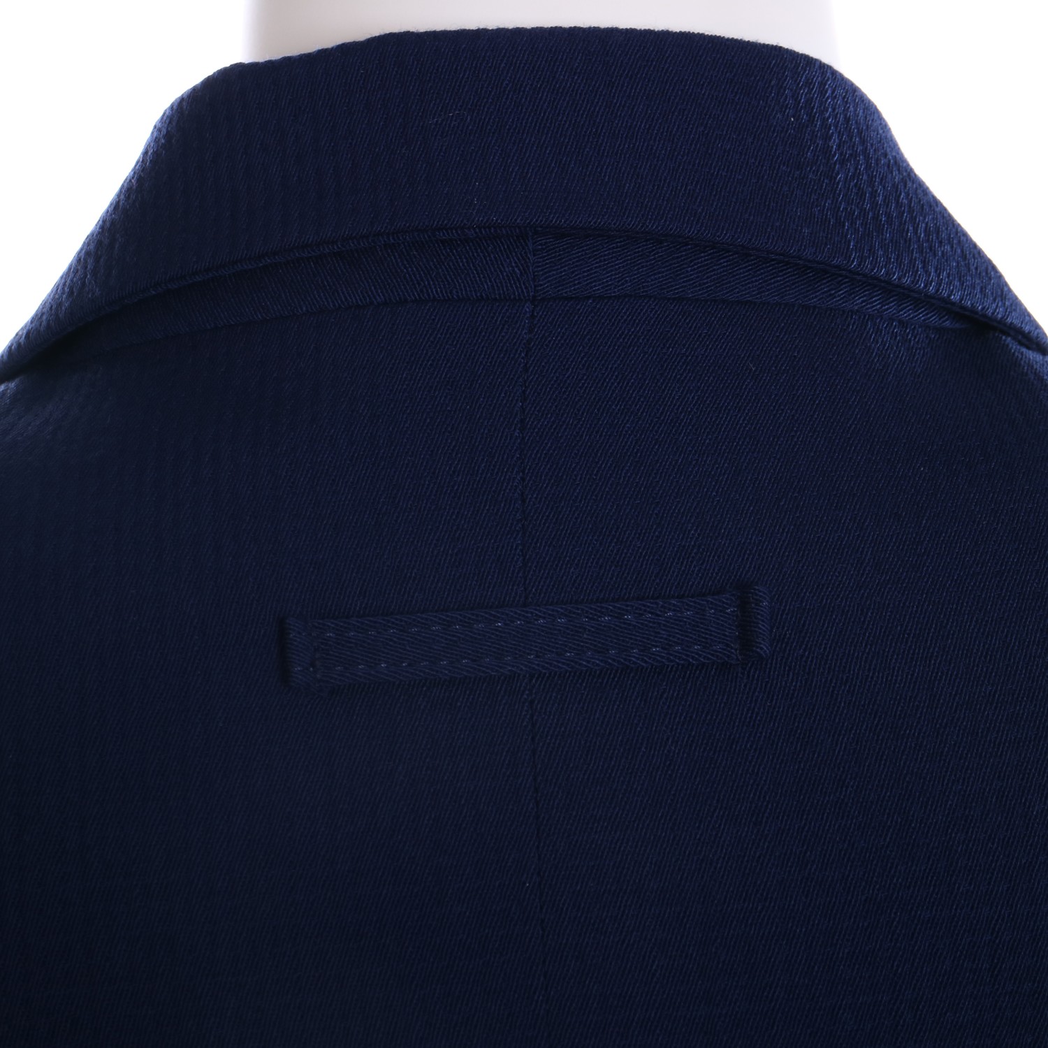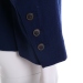 Set-in sleeves with padding. One bound buttonhole in lapel, two bound buttonholes for closure and three bound buttonholes in slit of each sleeve.
